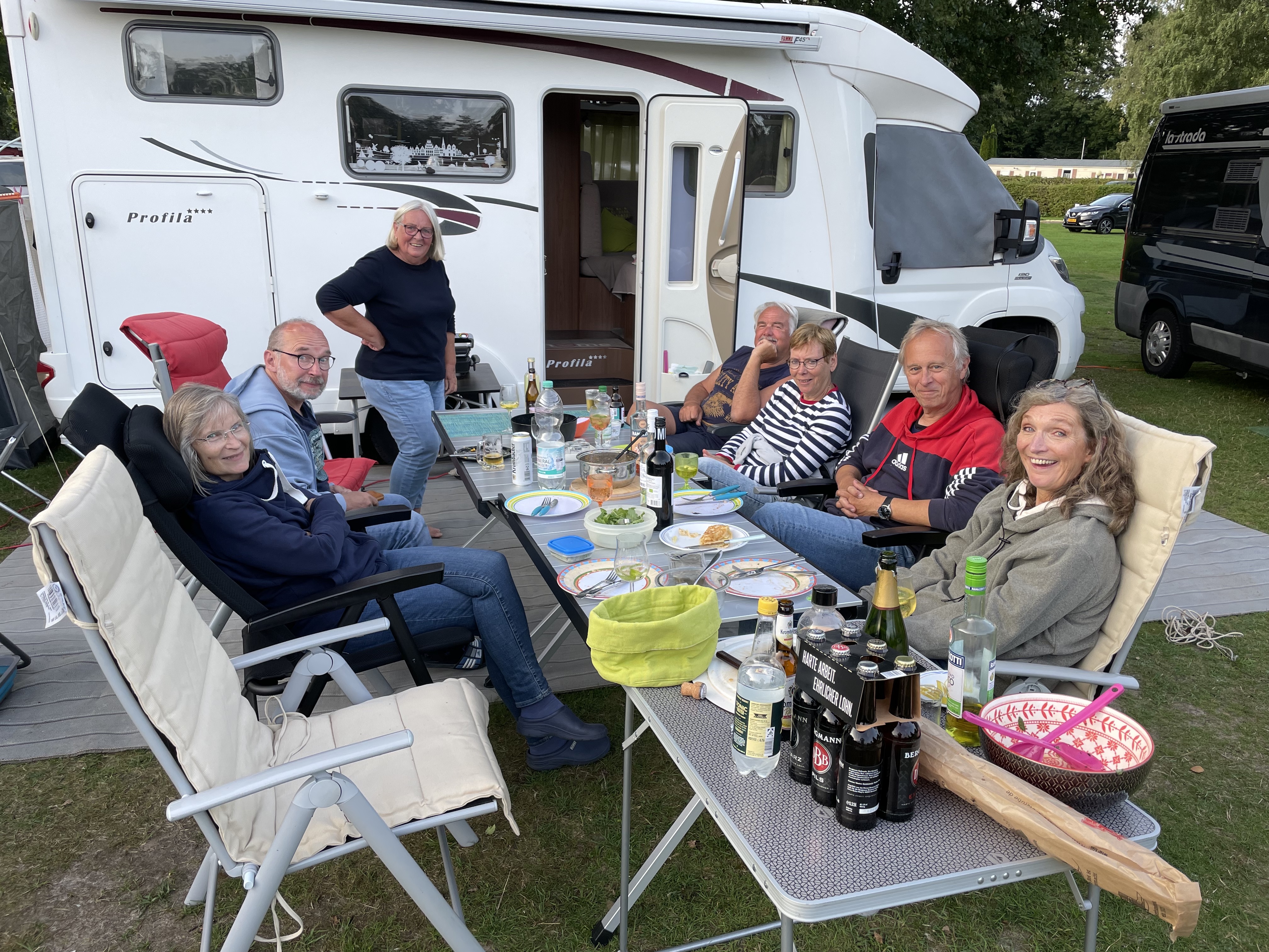 Mal geht es auf den Wohnmobil-Stellplatz in eine Stadt, meist aber auf einen Campingplatz, damit wir auch unsere „Zelter“ mitnehmen können, oft ist auch ein Badesee nebenan. Immer jedoch haben wir die Fahrräder dabei, um die nähere und fernere Umgebung zu erkunden. Am Samstagabend gibt es dann das kulinarische Highlight – unser Buffet – wo jeder seine mitgebrachten Leckereien auf den Tisch bringt. Bei einem kühlen Getränk (mit oder ohne Alkohol) und manch selbstgemachtem Likörchen lassen wir es uns gut gehen.